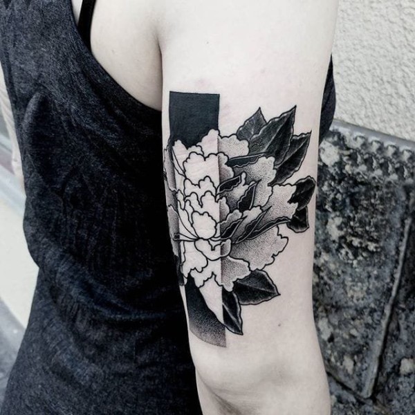男人大臂黑白彼岸花骷髅_黑白纹身图案大全_纹身图吧