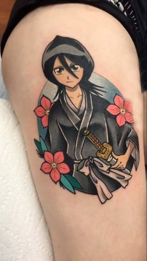 女生手臂上彩绘水彩素描创意经典卡通动漫纹身图片