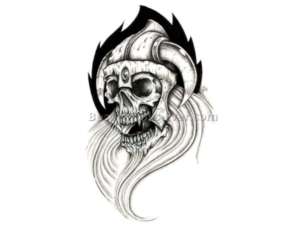 黑灰素描创意恐怖设计感十足骷髅纹身手稿