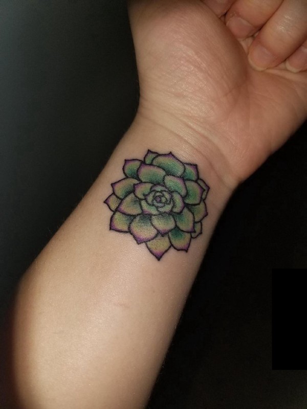 女生手腕上彩绘渐变简单线条植物莲花纹身图片
