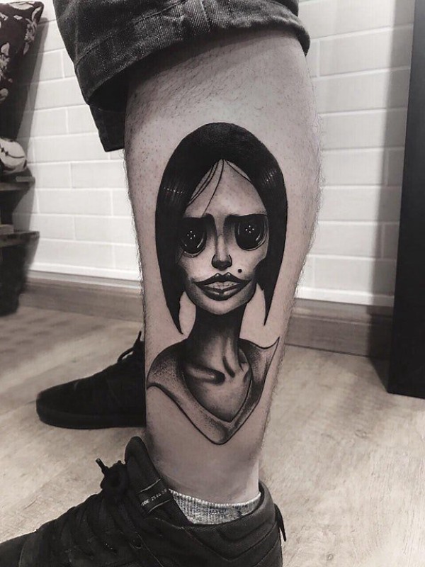 男生小腿上黑灰素描点刺技巧创意女生人物纹身图片