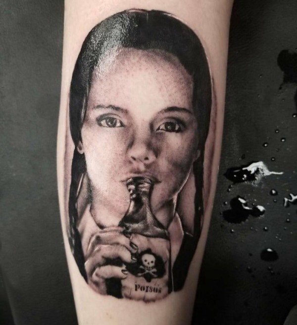 男生手臂上黑灰素描点刺技巧女生人物纹身图片