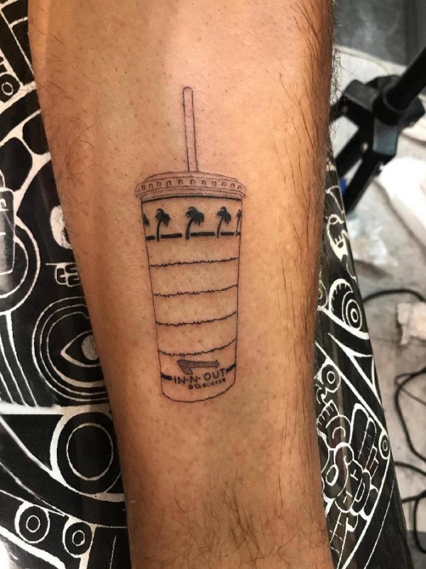男生手臂上黑灰素描创意设计感十足杯子纹身图片