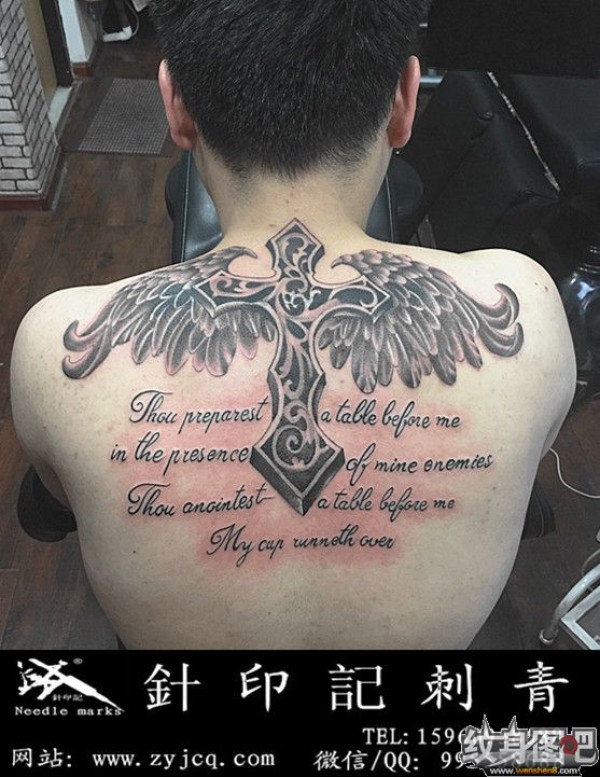 十字架纹身-背部翅膀纹身-福建三明沙县针印记刺青--胡宇作品