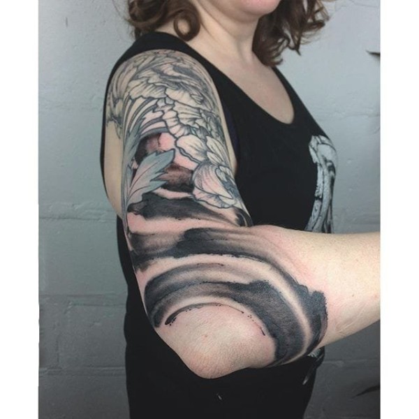 简洁的黑色点刺抽象线条创意水墨纹身图案