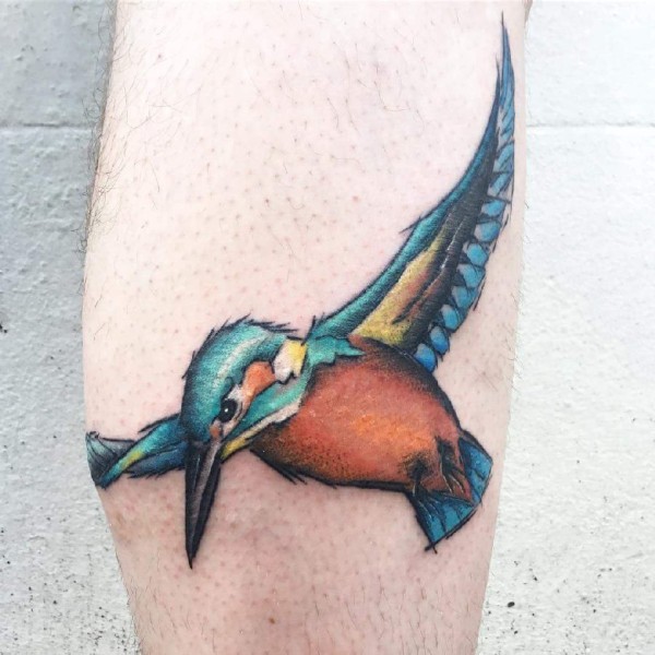 男生小腿上彩绘简单线条小动物鸟纹身图片