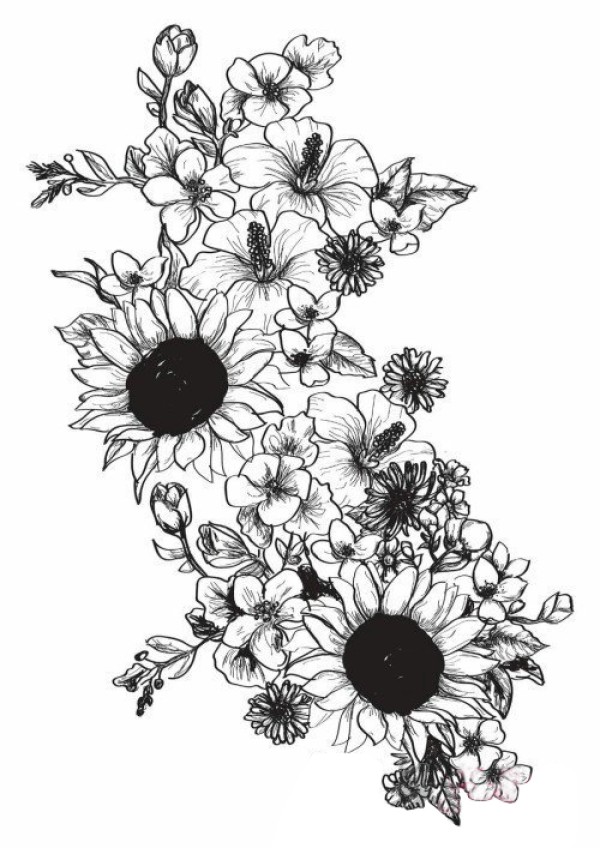 黑色素描创意唯美精致创意向日葵纹身手稿