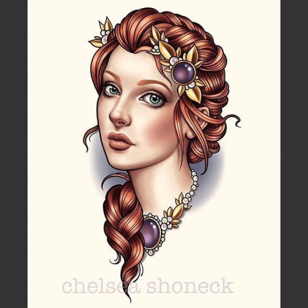 典雅的彩绘渐变简单个性线条人物肖像纹身手稿