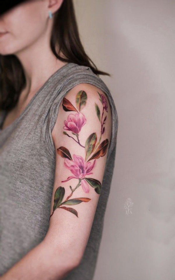 后肩唯美花藤英文图案图片_植物纹身图案大全_纹身图吧