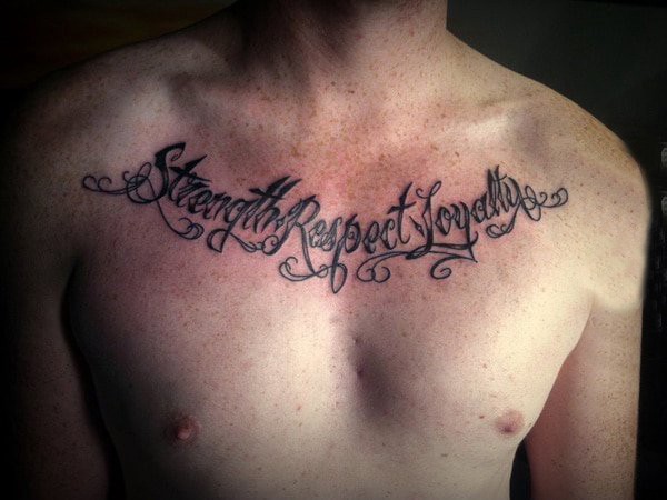 男生锁骨下黑色线条素描创意文艺唯美花体英文纹身图片