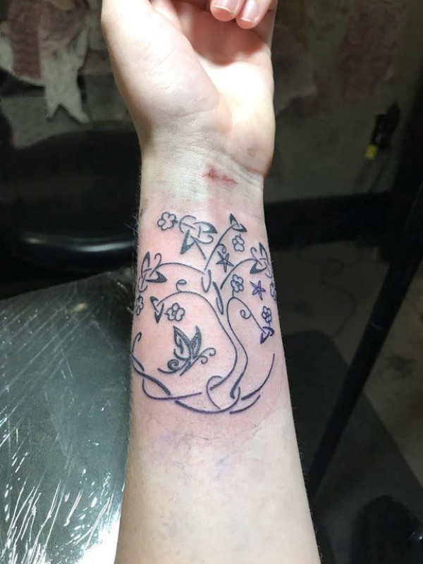 女生手腕上黑色几何简单线条创意植物生命树纹身图片
