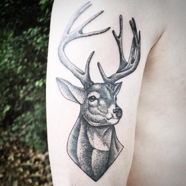 男生手臂上黑色点刺简单线条可爱小动物鹿纹身图片