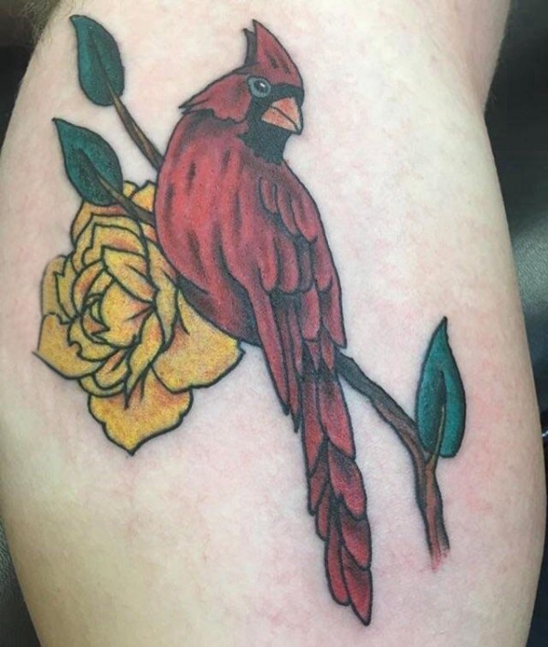 男生大腿上彩绘简单线条花朵和鸟纹身图片