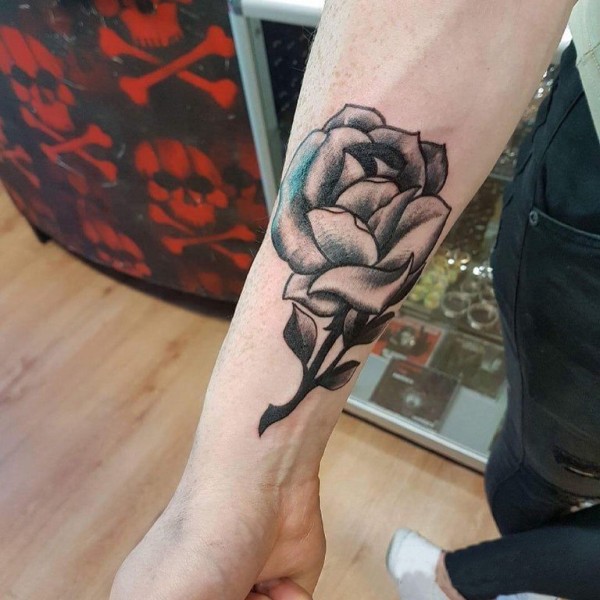 欧美玫瑰纹身 男生手臂上花朵纹身图片