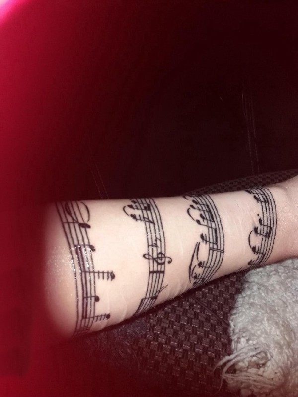 女生手臂上黑色简单抽象线条创意音符纹身图片