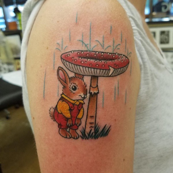 手臂一款彩色蘑菇纹身图案_臂部纹身图案大全_纹身图吧