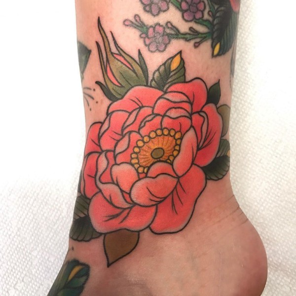 女生脚踝上彩绘渐变简单线条植物文艺花朵纹身图片