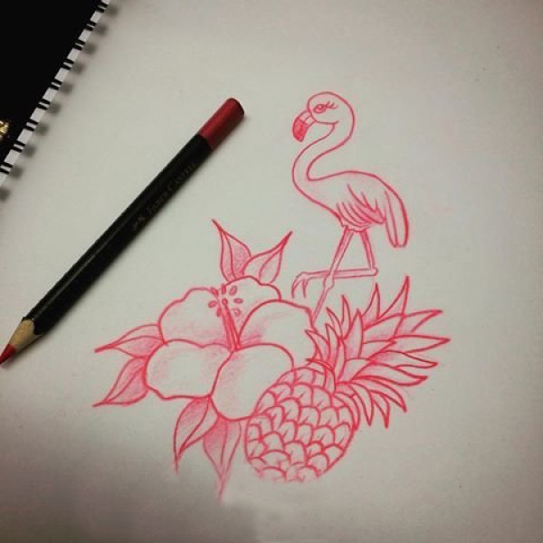 粉红色素描唯美玫瑰可爱菠萝动物鹤纹身手稿