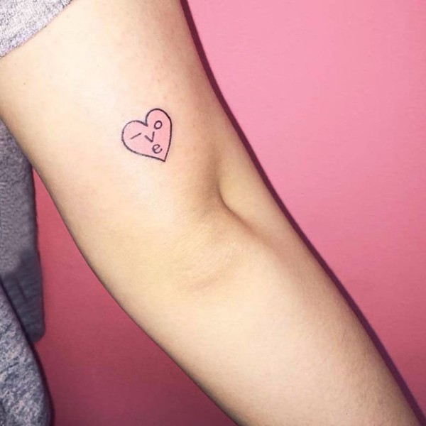 胳膊原创水彩心上钥匙纹身图案