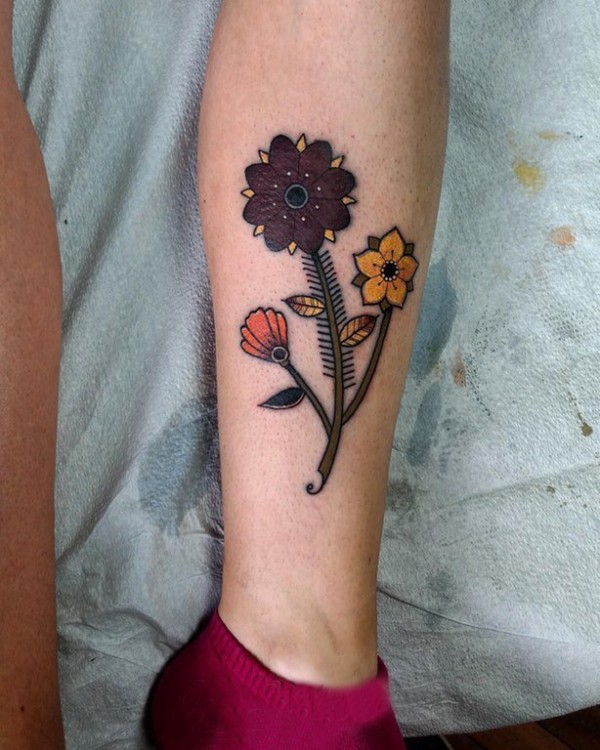 清新花朵腿部纹身图案图片_植物纹身图案大全_纹身图吧