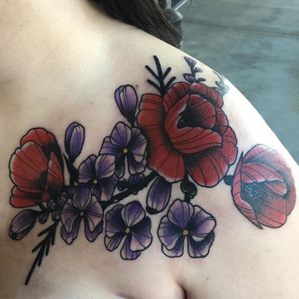 后肩唯美花藤英文图案图片_植物纹身图案大全_纹身图吧