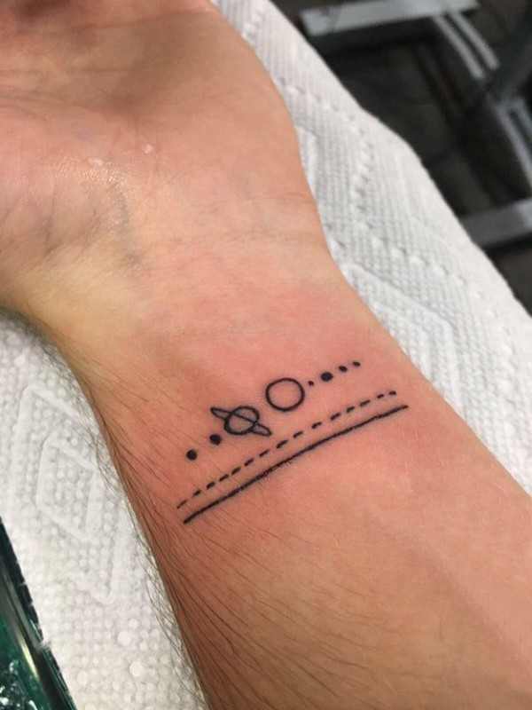 男生手腕上黑色几何简单线条小清新星球纹身图片