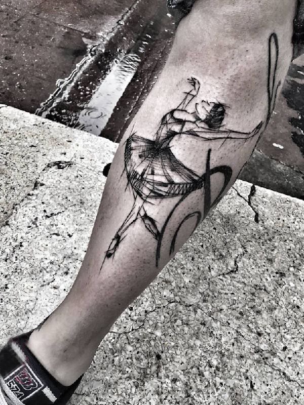 女生小腿上黑灰素描点刺技巧创意女生肖像纹身图片