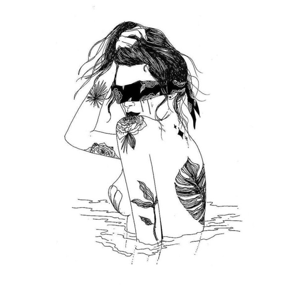 多款黑灰素描创意精致独特抽象女生肖像纹身手稿
