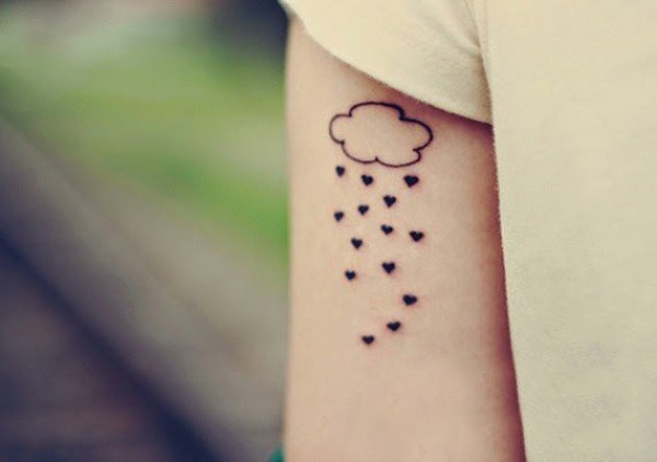 女生手臂上黑色线条创意文艺精致云朵纹身图片