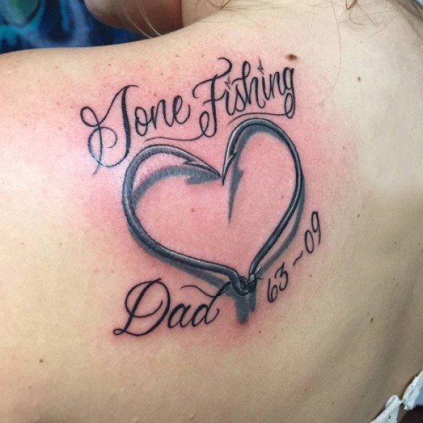 女生背部黑灰素描点刺技巧创意心形花体英文纹身图片