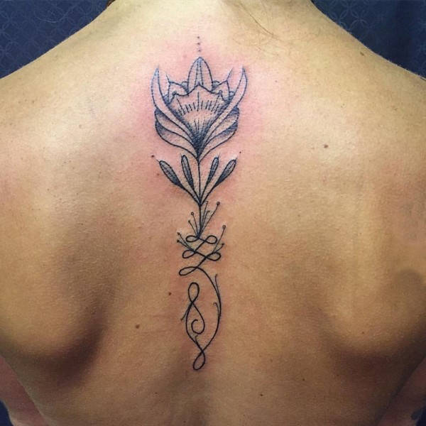 女生背部黑灰素描点刺技巧创意文艺莲花纹身图片