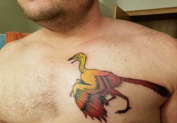 男生胸部彩绘渐变简单线条小动物鸟纹身图片