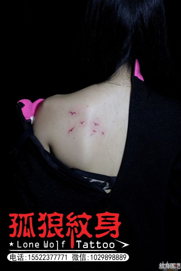 宝坻纹身 美女肩胛海鸥小清新纹身 孤狼纹身工作室作品 天津