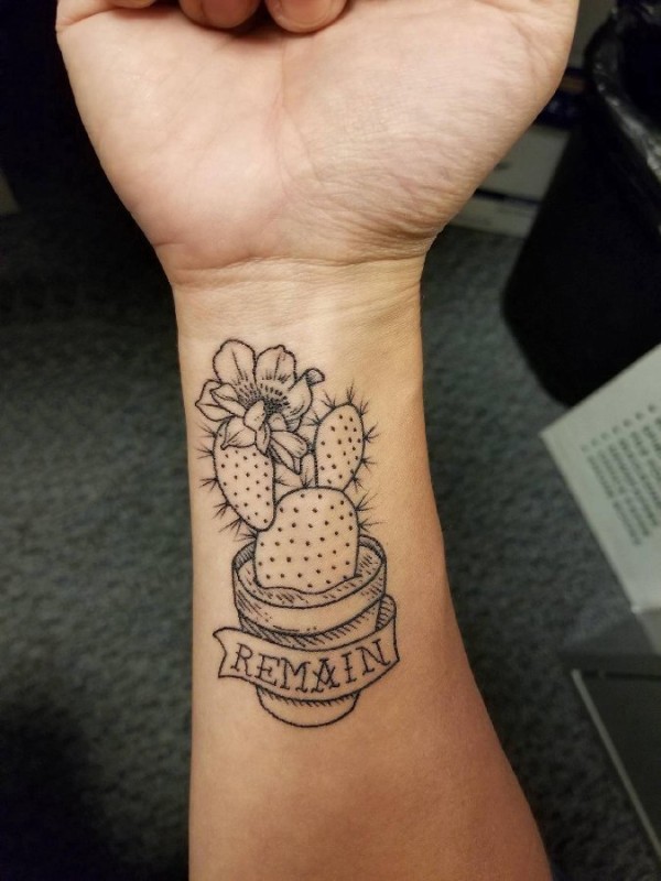 男生手腕上黑灰点刺几何简单线条植物仙人掌纹身图片