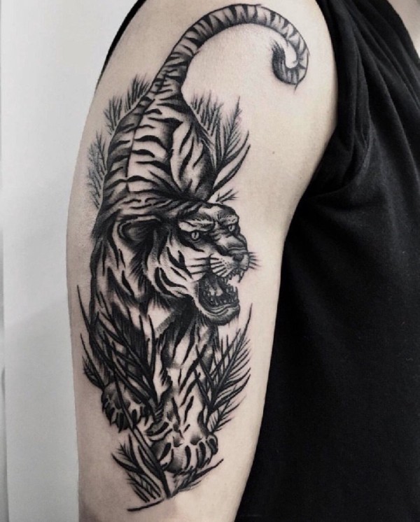 霸气半胛老虎纹身_动物纹身图案大全_纹身图吧
