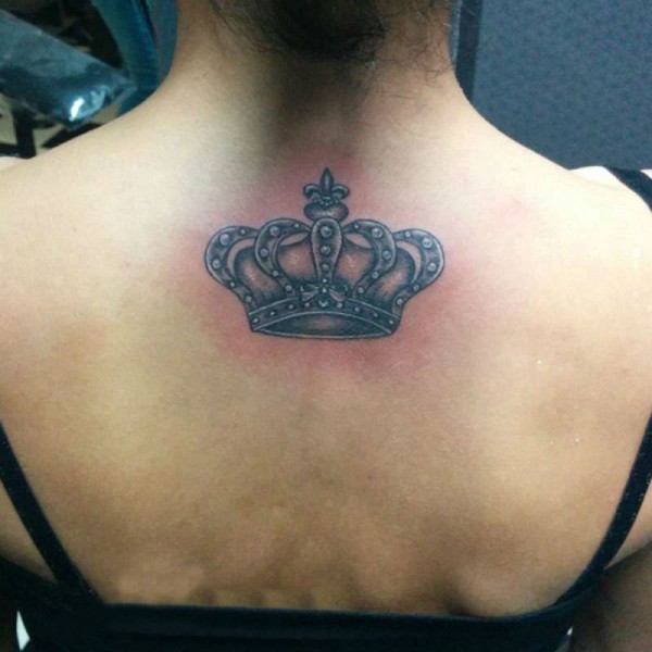 女生背部黑灰素描点刺技巧创意文艺唯美皇冠纹身图片