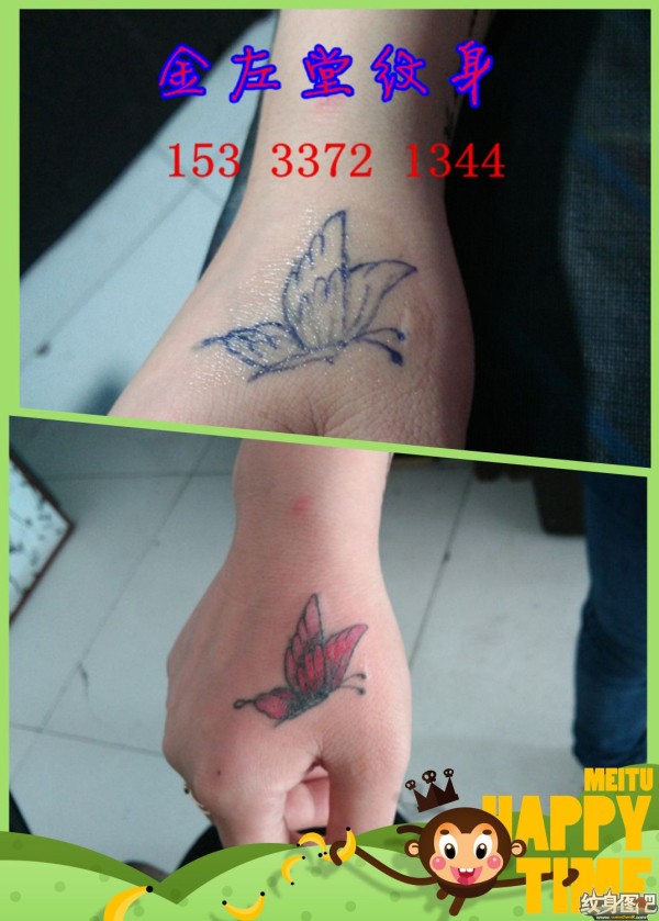 蝴蝶纹身安阳水冶纹身金左堂纹身15333721344 盖疤 修改纹身