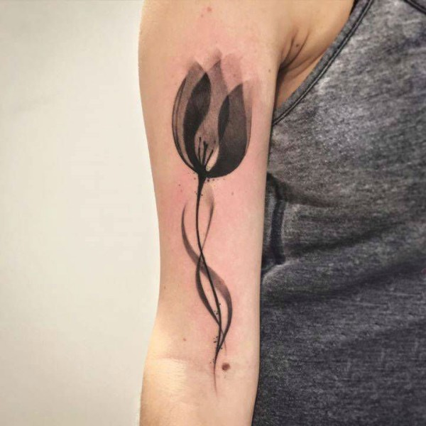 女生手臂上黑灰素描点刺技巧唯美花朵纹身图片