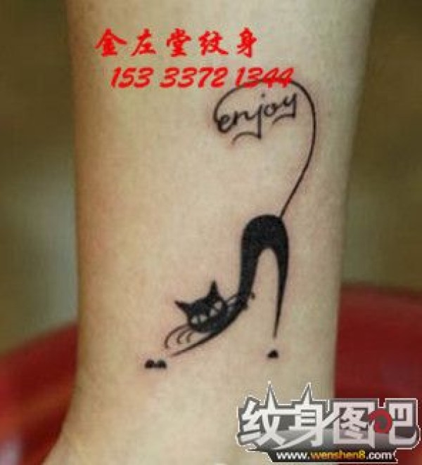 脚腕小猫咪纹身安阳水冶纹身金左堂纹身15333721344 盖疤 修改纹身
