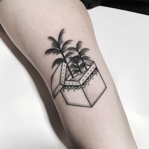 男生手臂上黑灰素描点刺技巧创意树文艺纹身图片