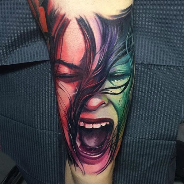 多款手臂上彩绘水彩素描描绘的创意霸气花臂纹身图案
