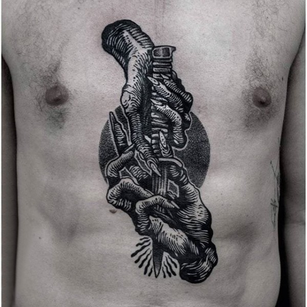 多款黑灰素描点刺技巧描绘的创意精致的纹身图案