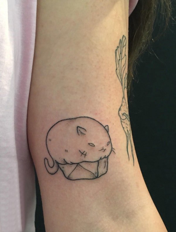 女生手臂上黑色几何简单线条小动物胖猫咪纹身图片