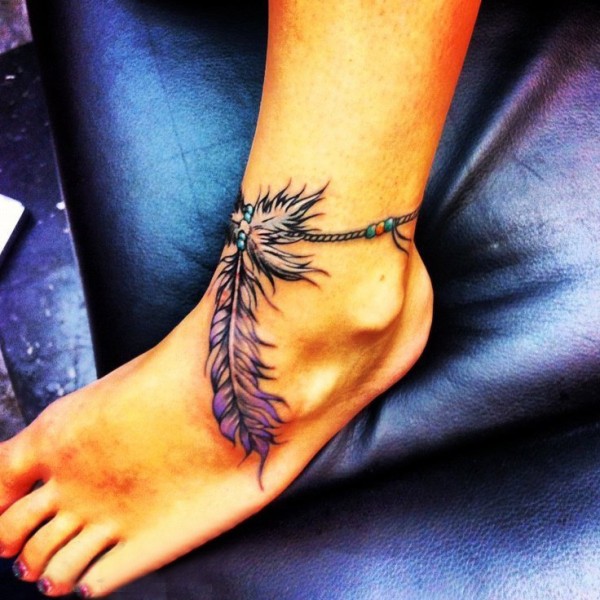 女生脚背上彩绘水彩素描创意文艺羽毛纹身图片