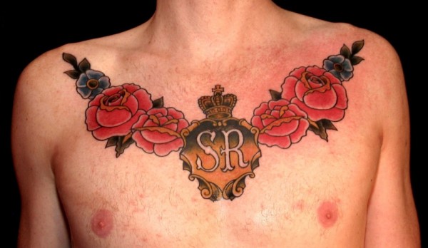 男生锁骨下彩绘水彩素描创意文艺唯美花朵纹身图片