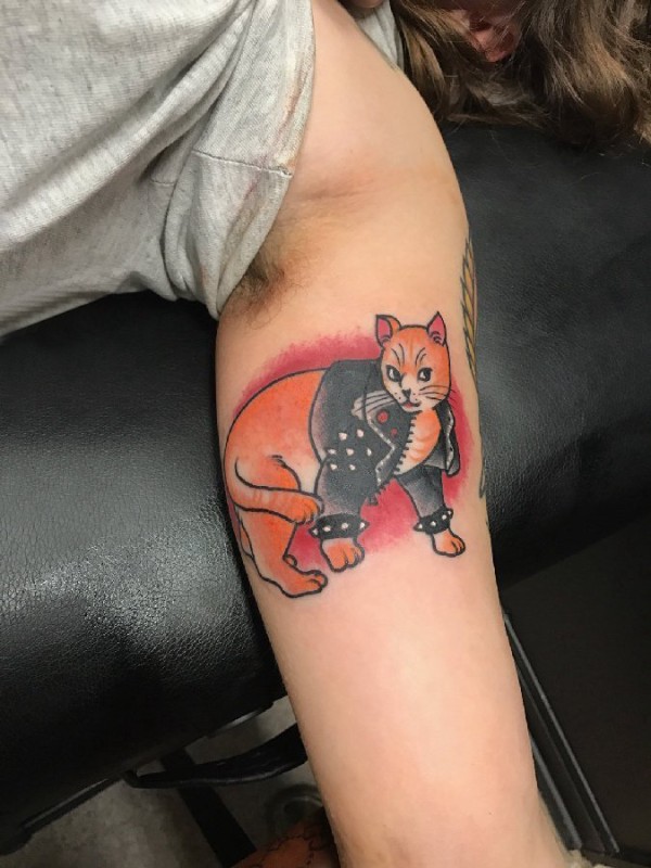 男生手臂上彩绘水彩素描创意可爱猫咪纹身图片