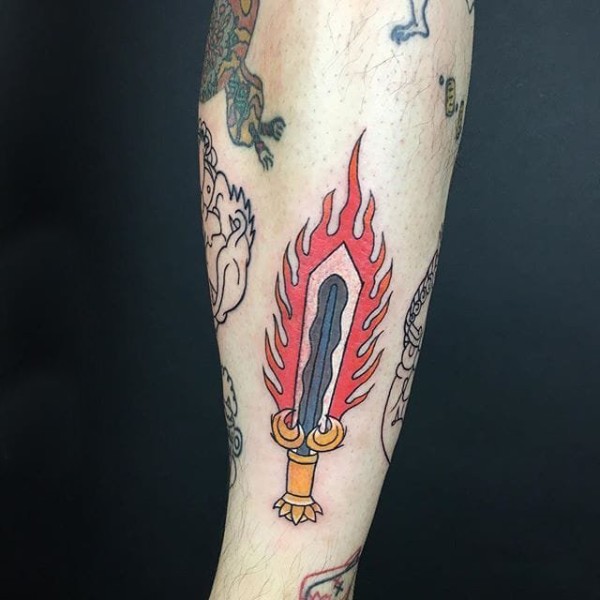 多款彩绘水彩素描创意霸气精致的匕首纹身图案