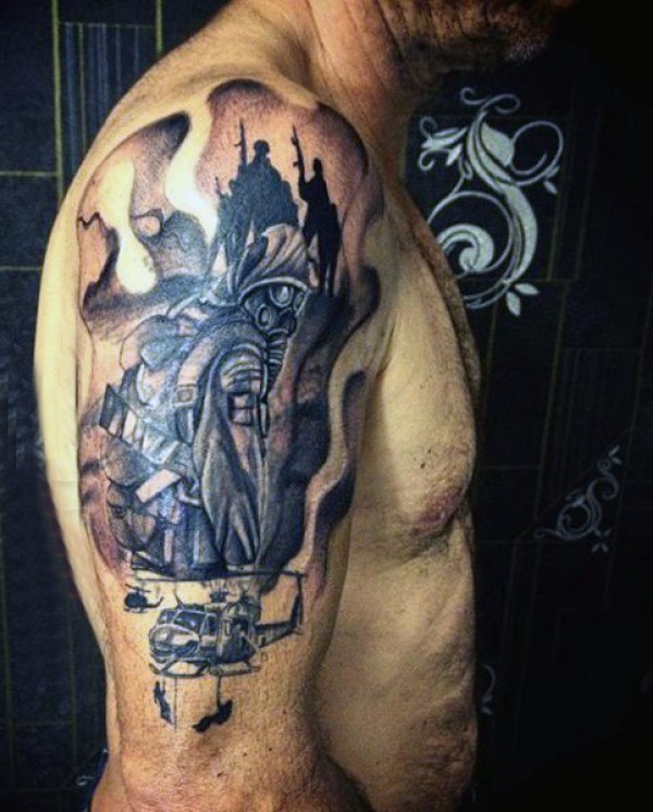 多款黑灰素描点刺技巧创意经典霸气战争元素纹身图案