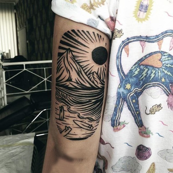 欧美花臂纹身_22张霸气黑灰欧美大黑花臂纹身图案作品图片