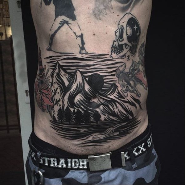 欧美向震撼人心的浮雕景观纹身图案